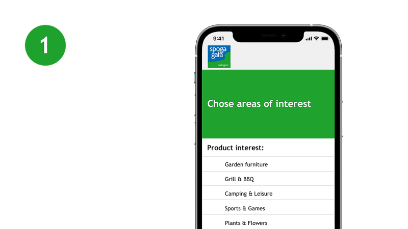 There is no more selective way of addressing potentially interested parties at spoga+gafa than using Lead+Meet. You can determine precisely who is addressed – and can then send your message directly to the right potential customers. These will subsequently be guided automatically to your stand.