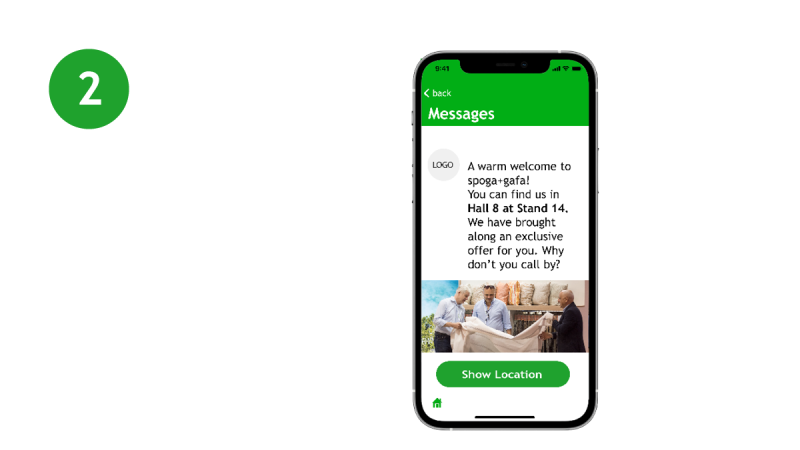 Imagine the following scenario: spoga+gafa 2025, a visitor enters the hall you are exhibiting in. On purchasing the admission ticket the person stated that he or she is interested in your product section. The smartphone vibrates, an invitation to your stand appears on the display, including an individualised offer. At the push of a button his or her mobile phone will guide to your stand, where you greet the visitor with a lovely cup of coffee.