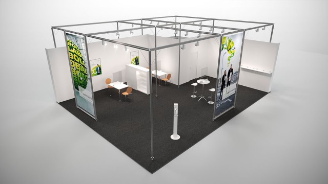 The prices always refer to a W8 x D7 = 56 sqm corner stand. Other stand sizes and shapes (terrace stand, two-corner stand, island stand) are modularly adaptable and can be individually calculated according to your briefing.