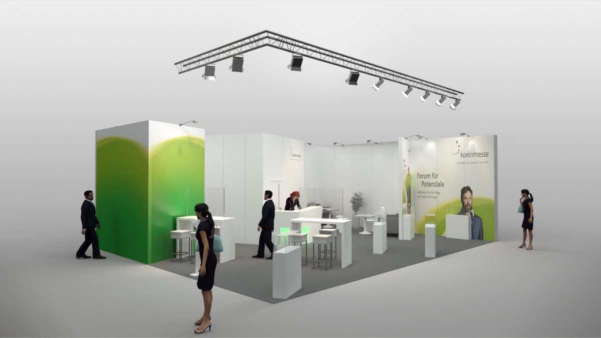 The prices always refer to a W8 x D7 = 56 sqm corner stand. Other stand sizes and shapes (terrace stand, two-corner stand, island stand) are modularly adaptable and can be individually calculated according to your briefing.