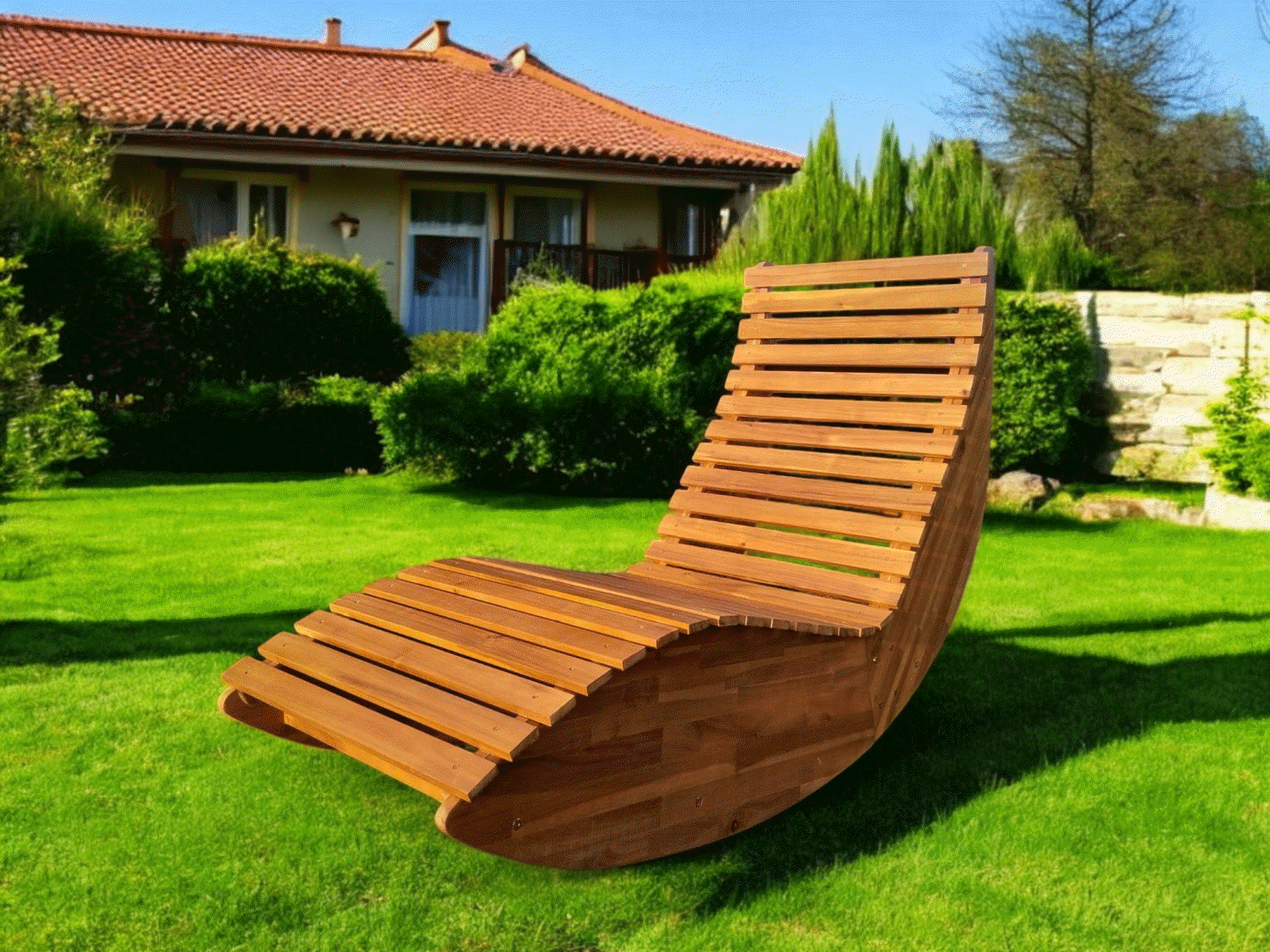 This acacia rocking lounger is made from sturdy acacia wood with a harmonious natural color. You will enjoy moments of relaxation in the garden or by the pool with this lounger. The chair is designed to ensure a comfortable reclining position for the user.