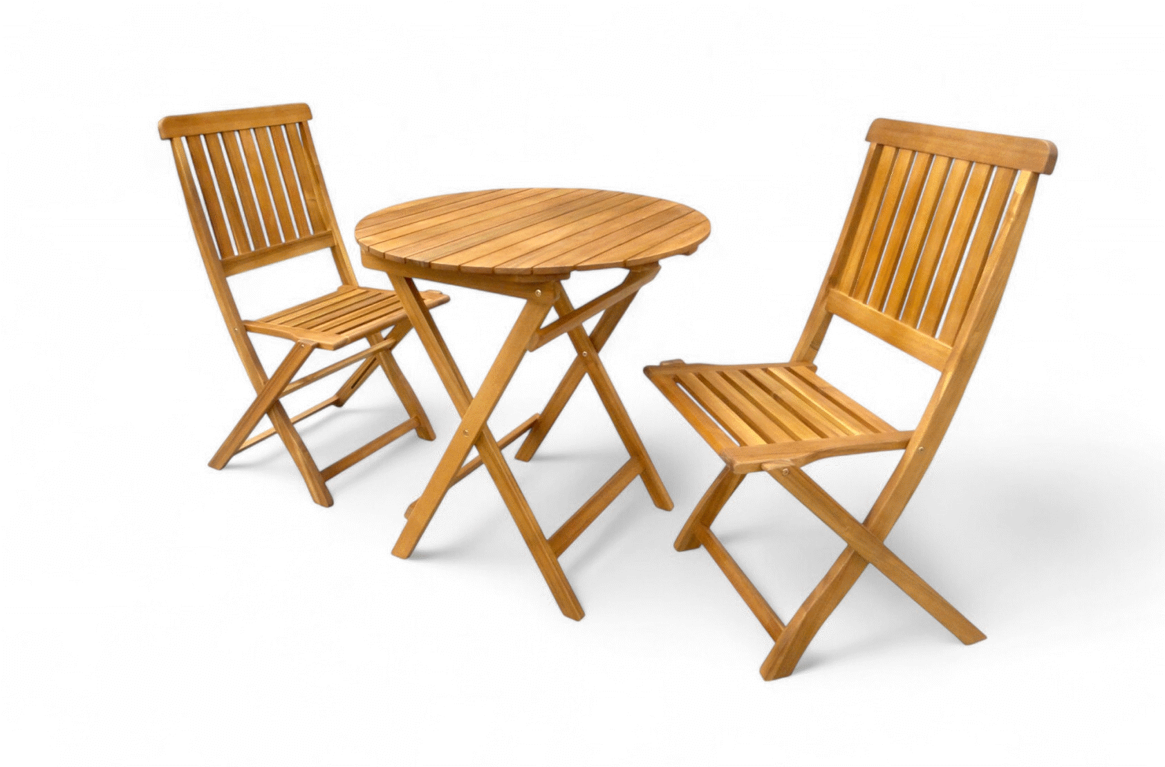 This set is made from premium acacia wood, with a natural and beautiful wood grain. The product is suitable for balconies and gardens. Both the table and chairs can be folded when not in use. It is very convenient and creates a cozy atmosphere for the space.